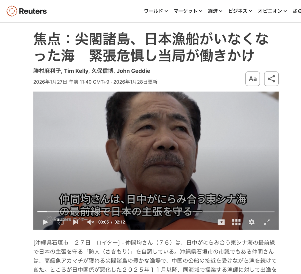 尖閣の海に出て漁を続けることは、静かに日本の領海の存在を示す行為でもあります。